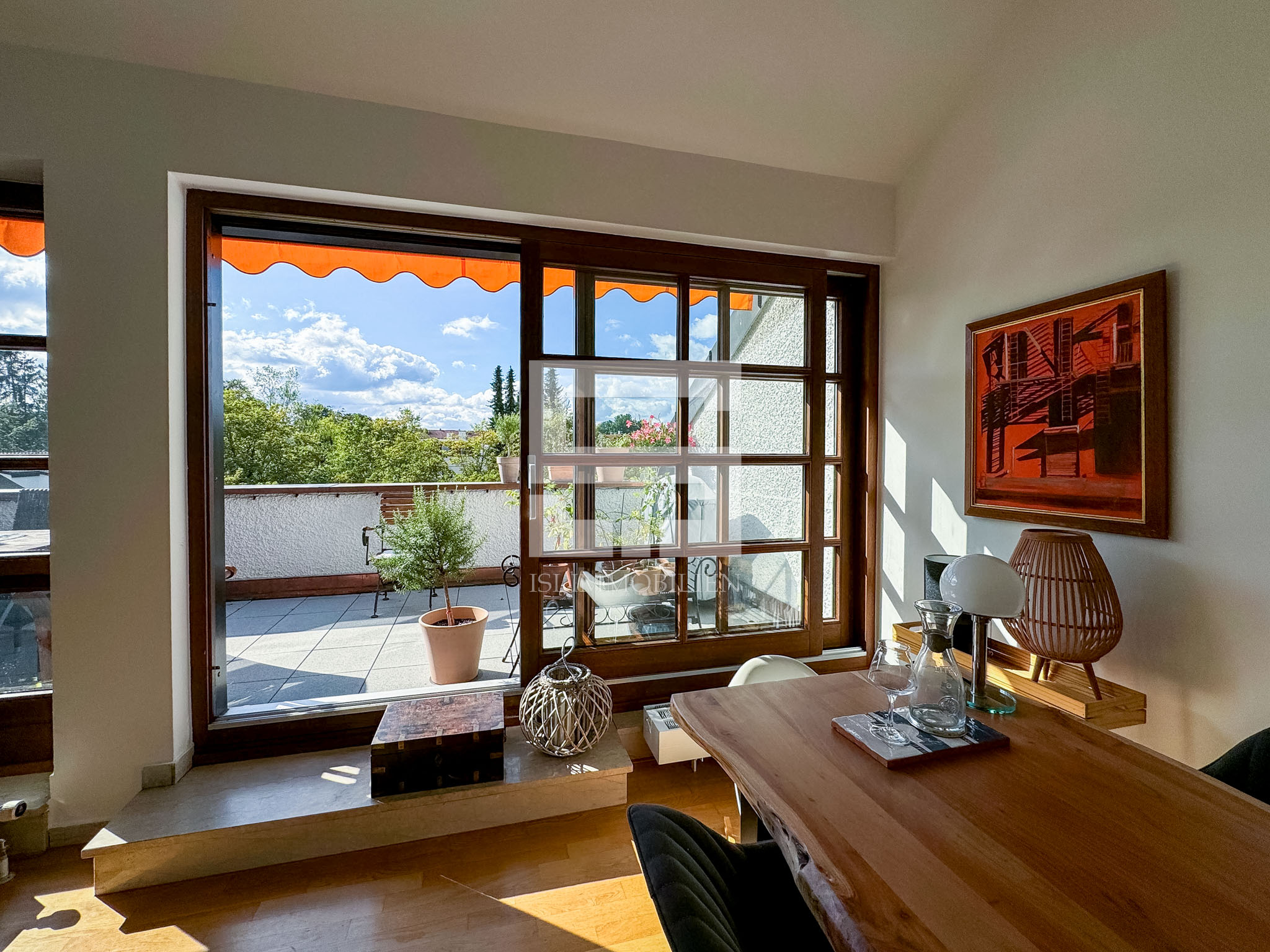 Die schöne Dachgeschosswohnung wurde im Jahr 2023 umfassend renoviert. Die Küche wurde vergrößert, das Bad komplett saniert, die Fensterrahmen wurden gestrichen und zusätzlicher Stauraum in der Diele geschaffen. Auch die Dachterrasse wurde instandgesetzt und ein neuer Boden verlegt.