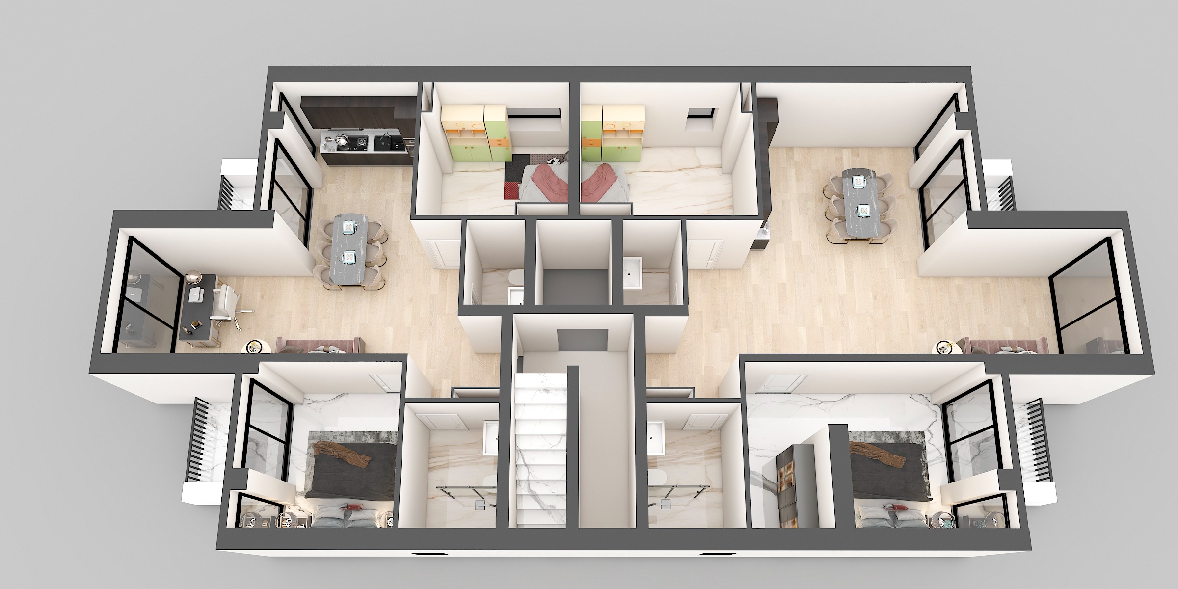 Die moderne und hochwertige Wohnung im 1. Obergeschoss mit ca. 60 m² wurde nach neuesten energetischen Gesichtspunkten errichtet. Die Wohnung ist barrierefrei nach DIN 18040-2.